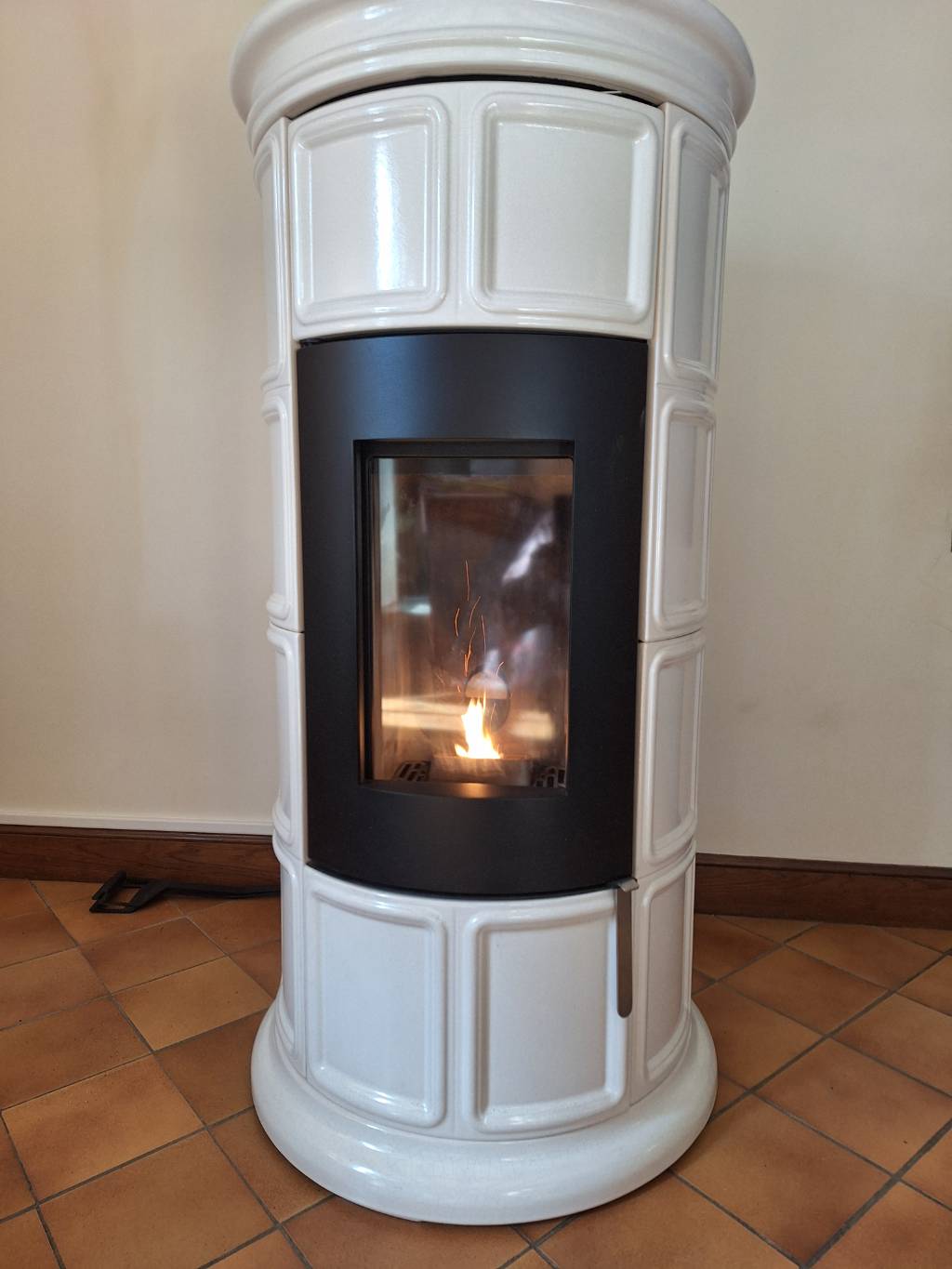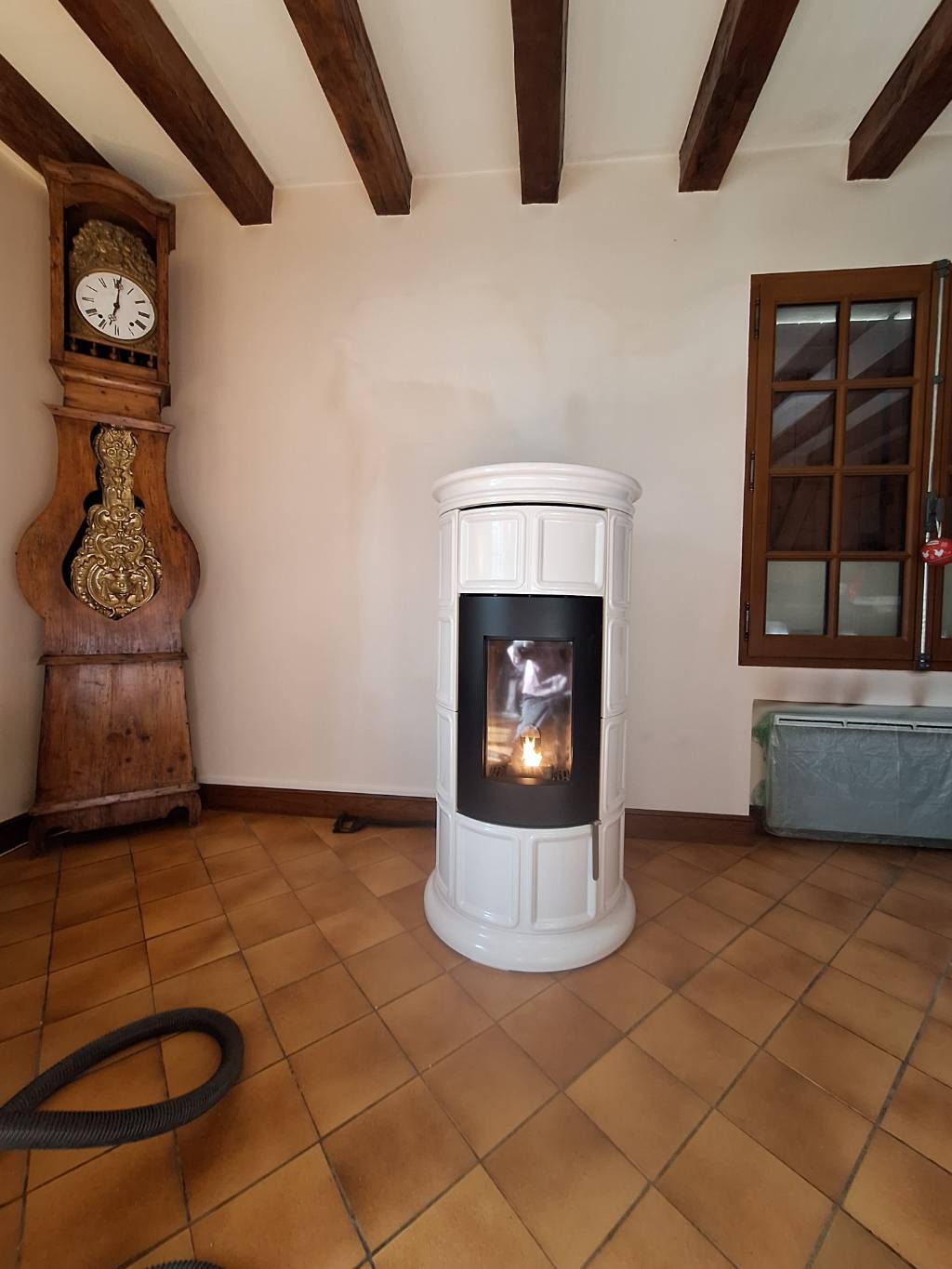 Dans un maison existante à Monteaux entre Blois et Amboise, installation et mise en service d'un poêle à granulés de marque SERGIO LEONI, modèle Marène Tonda.