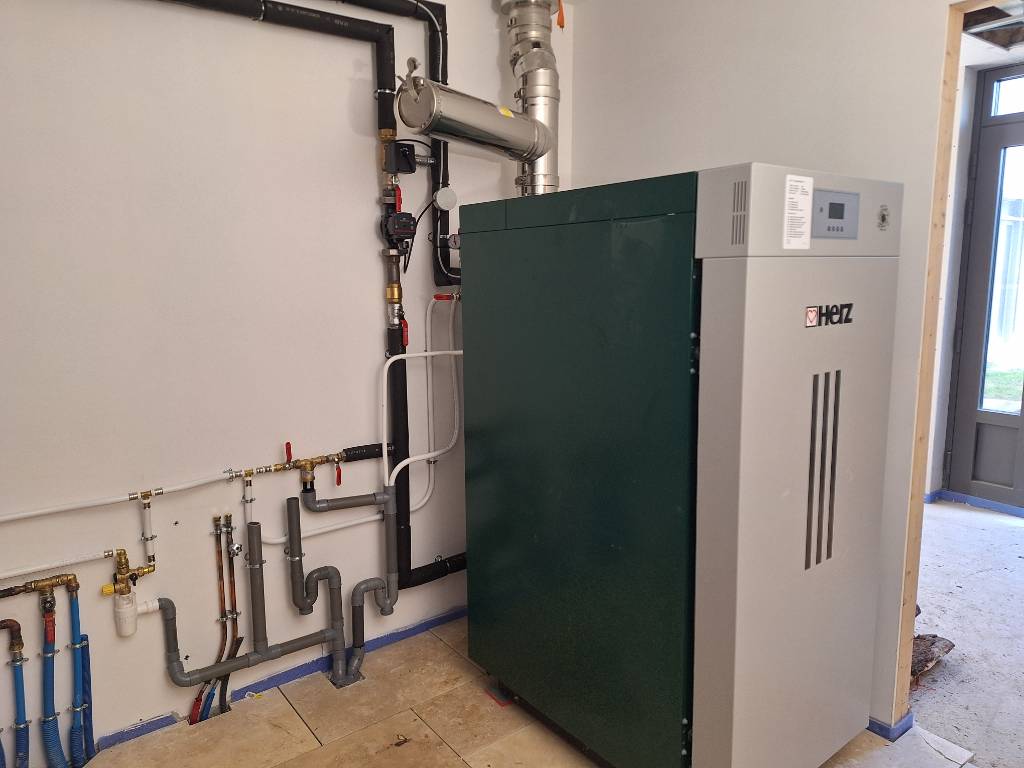 Installation d'une chaudière à bois en bûches HERZ avec ballon tampon